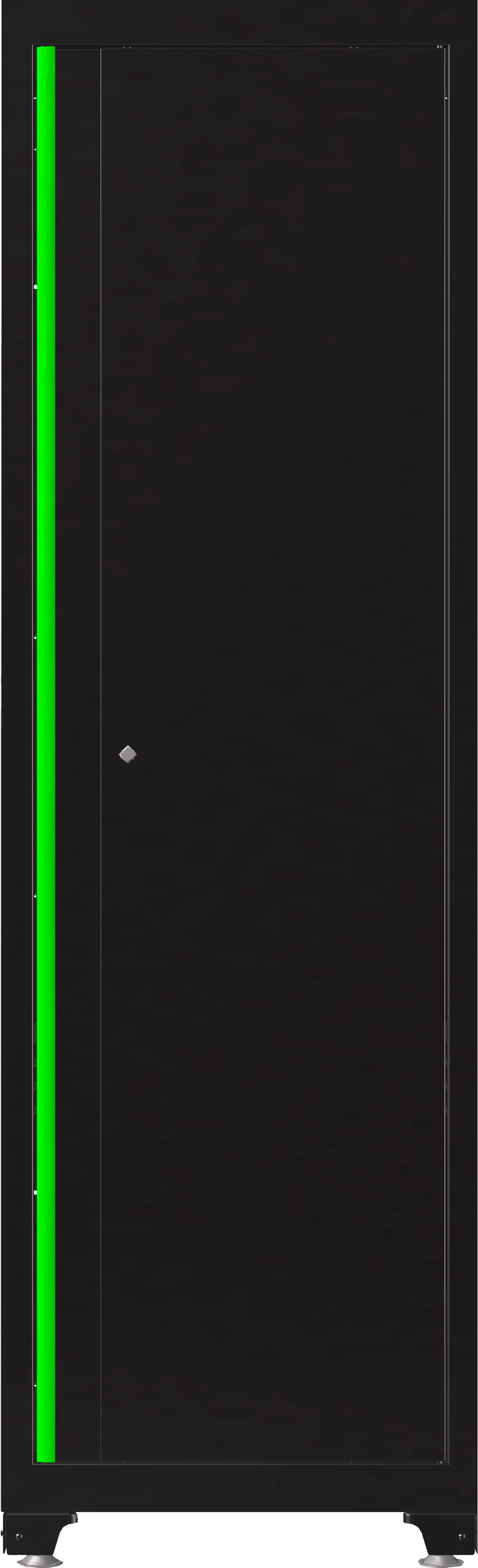 Armoire haute conçue avec pieds réglables en hauteur, cylindre à clé et plateaux intérieurs. Sa structure polyvalente permet une utilisation comme étagère ou comme espace de rangement vertical pour outils, accessoires et matériels nécessitant plus de capacité.