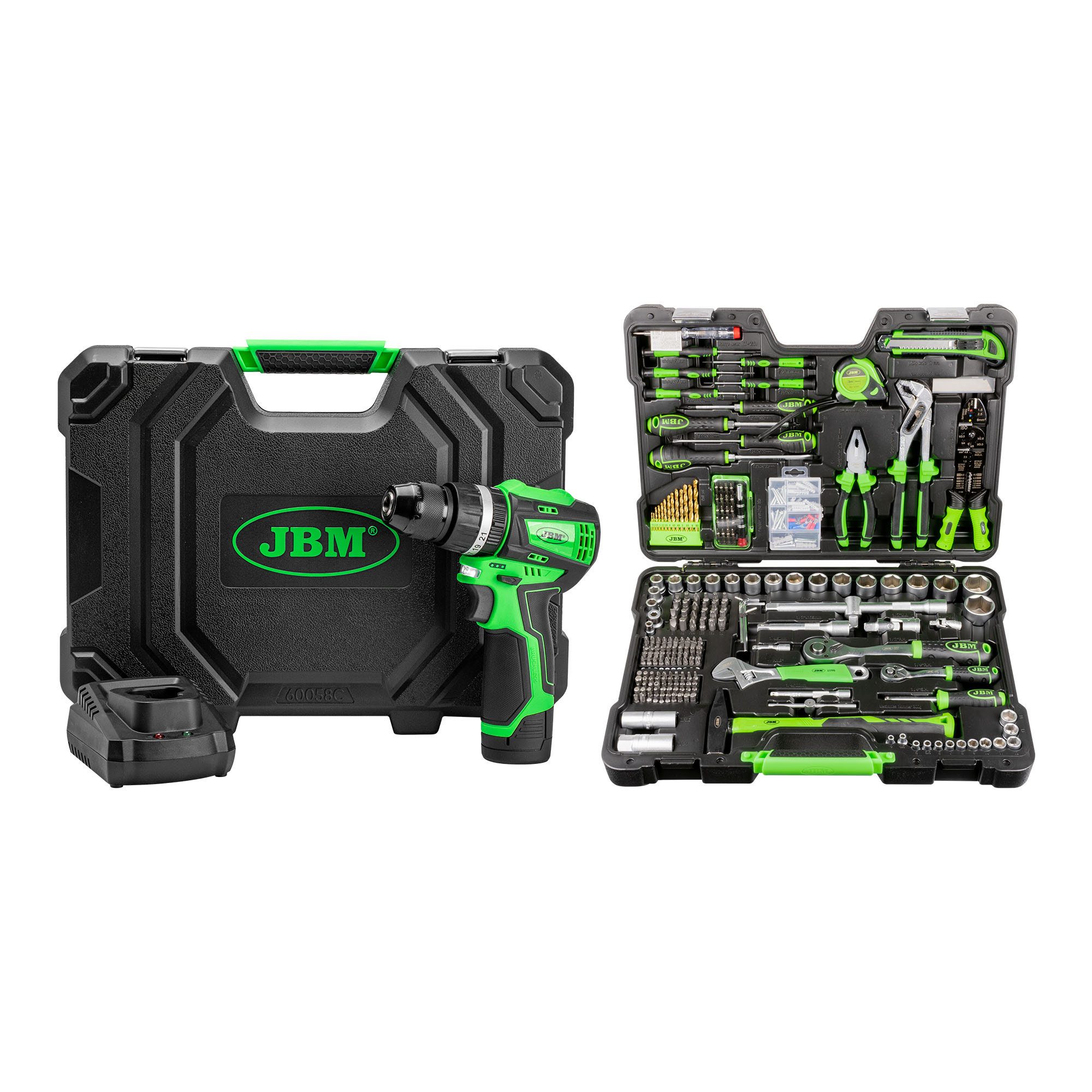 60058C PERCEUSE À PERCUSSION SANS BALAIS 12V AVEC MALLETTE + 53212 COFFRET À OUTILS DE 302 PIÈCES
